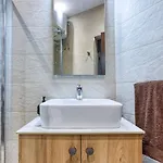 The apartment includes a washing machine for your comfort. A hair dryer and complimentary toiletries are also included in the bathroom.